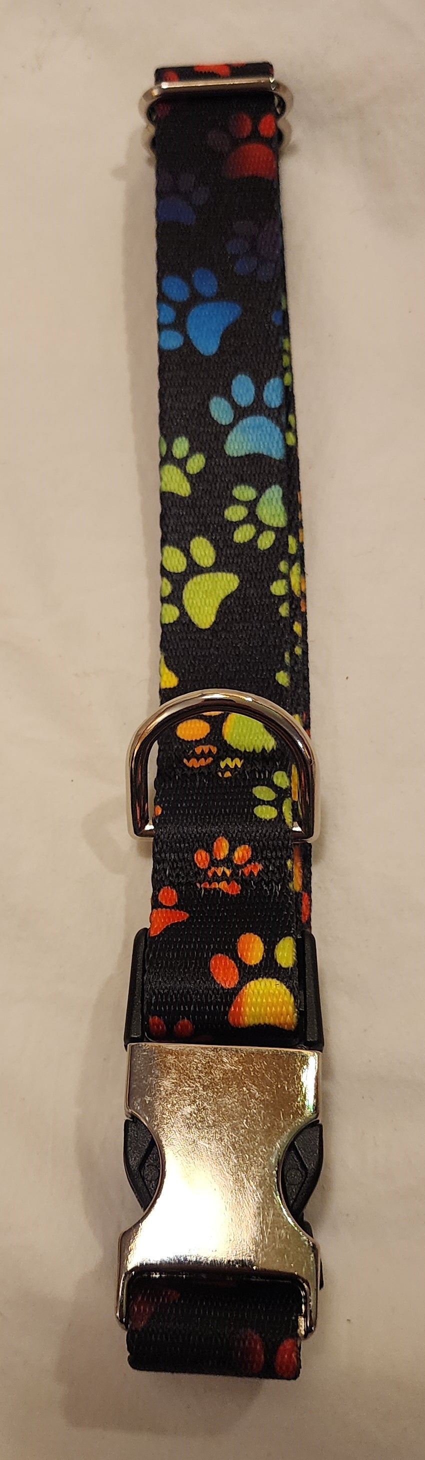The flat collars come in various patterns and sizes. They secure with an adjustable quick release buckle.