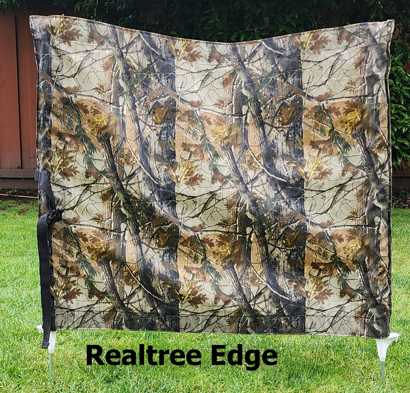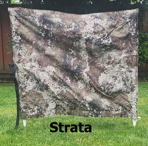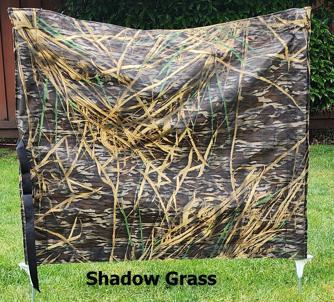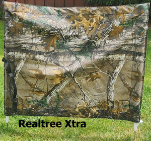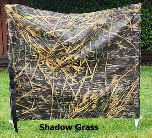 This is a perfect way to hide your bumper launcher or other equipment. It measures 36" in width and 30" tall. The poles are a polyvinyl step in pole making it easy to set up as well as easy to store away when it is not in use. The blind is reinforced with webbing on the top and bottom edges and features an attached closing strap with a quick release buckle.